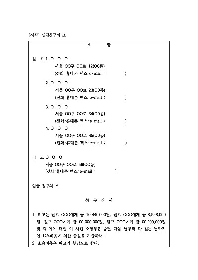주요내용 : 사용자로부터 미지급된 임금을 법적으로 확보하기 위한 목적으로 사용되어지는 소장 양식임. 단 무단전재 방지목적으로 PDF 파일로 올리니, 구매하신 후 혹 원본 파일이 필요하신 분들은 톡이나 문자, 메일, 전화 등을 주시면 작성방법 등에 대한 간단한 무료상담과 함께 원본 파일을 보내드리도록 하겠습니다.