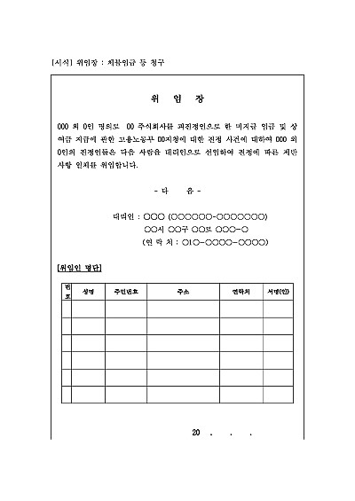 위임장 : 체불임금 등 청구 요약정보 및 구매