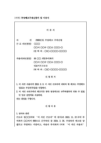 부당해고구제신청서 및 이유서 요약정보 및 구매