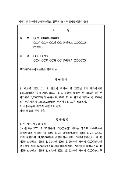부가가치세부과처분취소 청구의 소 : 허위세금계산서 문제 요약정보 및 구매