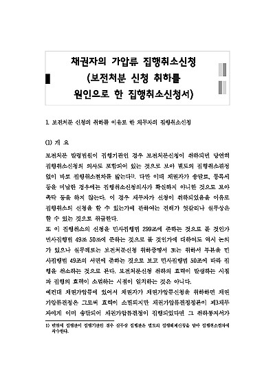 주요내용 가압류이의신청서란 채무자가 자신의 재산에 대한 가압류 결정이 부당하다고 판단될 때, 법원에 해당 가압류 결정을 취소하거나 변경해달라고 신청하는 서류이며, 주로 채무자가 가압류의 근거가 되는 채권이 없거나(채무 소멸, 변제 등), 가압류 범위가 너무 과도할 때, 또는 절차상 하자가 있을 때 제출합니다. 이 서류는 가압류 결정의 효력을 다투고 재산을 보호하기 위한 채무자의 중요한 방어 수단임, 본 내용은 그와 관련 된 가압류 등에 대한 이의신청의 개념, 관할, 신청방식 및 절차, 신청취하, 심리, 이의사유, 관련 핵심판례 및 서식 등을 모두 기재해 둠으로서, 전문가적 시각에서 관련 절차를 진행할 수 있도록 정리하였다는 그 특징이 있다.