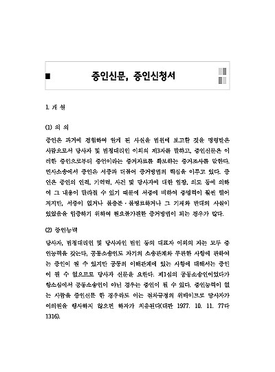 주요내용 : 증인신청이란 소송에서 사실관계를 명확히 하기 위해 사건의 경위를 아는 제3자(증인)를 법원에 불러 증언하게 해달라고 요청하는 절차로, 신청인이 증인신청서를 제출하고 법원이 채택하면 증인이 법정에 출석해 선서 후 자신의 경험을 진술하는 방식으로 진행되며, 이는 서류만으로는 부족한 인적 증거를 확보하고 공정한 재판을 돕는 중요한 증거 수집 방법임, 본 내용은 그와 관련 된 증인신문의 개념, 증인신청 채부결정, 증인의무,불출석에 대한 재제, 증인조사방식, 신문사항 제출방식, 증인소환, 증인신문방법, 관련 핵심판례 및 서식들을 모두 기재해 둠으로서, 전문가적 시각에서 관련 절차를 진행할 수 있도록 정리하였다는 그 특징이 있다.