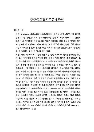 주요내용 : 주주총회결의 부존재확인의 소 제기시 청구취지는 어떻게 작성하여야 하고 또 청구원인에는 어떠한 요건사실을 기초로 어떠한 내용을 기재하며, 원고의 주요 공격방법은 무엇이 있고, 또 피고의 답변서 및 준비서면 등 작성시 주요 항변사유는 어떠한 것들이 있는 지 나아가 관련 사건 핵심 판례들까지 모두 기재함으로써, 관련 소송 진행 및 방어시 전문가 수준의 실제 소송이 가능한 필수적이고 핵심적인 지식들이 모두 수록 하였습니다