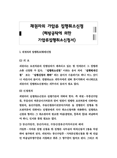 주요내용 가압류취소신청이란 법원의 가압류 결정이 내려진 후, 채무 변제, 채권자와의 합의, 본안소송 부제기(3년), 사정변경 등 가압류를 계속 유지할 이유가 사라졌을 때, 채무자가 법원에 가압류 결정을 취소해달라고 요청하는 절차로, 잘못된 가압류를 바로잡는 중요한 제도임, 본 내용은 그와 관련 된 개념, 신청절차, 결정, 공탁금반환, 관련 핵심판례 및 서식 등을 모두 기재해 둠으로서, 전문가적 시각에서 관련 절차를 진행할 수 있도록 정리하였다는 그 특징이 있다.