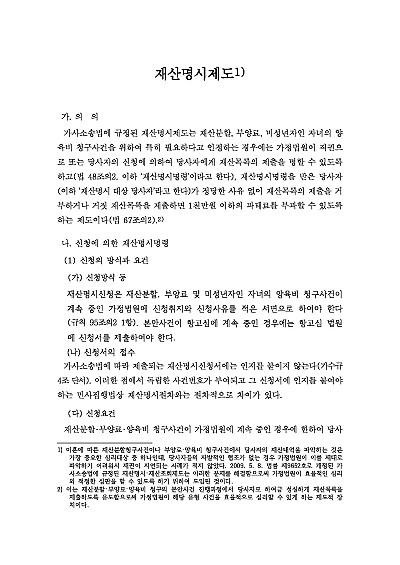 주요내용 : 이혼시 재산분할이나 양육비 등을 위해 상대방의 숨겨진 재산을 파악하기 위해 법원에 신청하는 절자로, 법원이 상대방에게 재산 목록 제출을 명령하고, 이를 거부하거나 허위로 제출하면 과태료를 부과해 재산 공개를 강제하는 제도이며, 이 절차를 통해 부동산, 예금, 보험 등 구체적인 재산 내역을 확인하고, 이후 재산조회신청으로 추가적인 재산을 파악하여 공정한 재산분할의 기초를 마련할 수 있음, 본 내용은 그와 관련 된 재산명시제도의 개념, 신청방식 및 요건, 불복방법, 명시명령의 효력, 재산명시 불이행에 대한 제재, 관련 핵심판례 및 서식들을 모두 기재해 둠으로서, 전문가적 시각에서 관련 절차를 진행할 수 있도록 정리하였다는 그 특징이 있다.