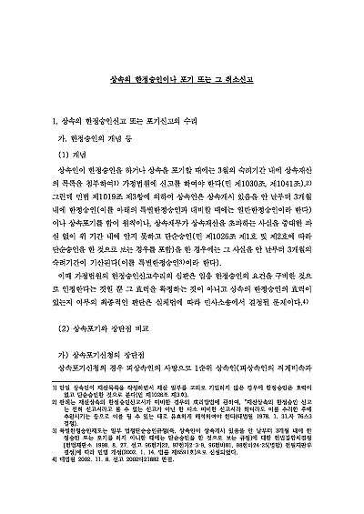 본 내용은 상속의 한정승인이나 포기 또는 그 취소신고의 수리 등과 관련하여, 한정승인의 개념, 신고할 수 있는 자, 효과, 관할, 신고, 심리, 심판,한정승인에 의한 청산절차 등의 내용 및 판례 등 핵심적인 사항들을 모두 기재해 둠으로써, 본 내용을 기초로 전문가적 시각에서 관련 절차를 진행할 수 있도록 정리하였습니다.
