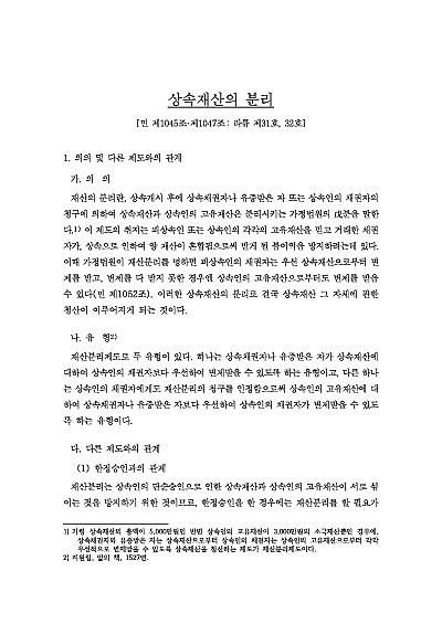 본 내용은 상속이 개시된 이후에 상속채권자, 유증을 받은 사람 또는 상속인의 채권자의 청구에 의해 상속재산과 상속인의 고유재산을 분리하는 것과 관련된 개념, 청구권자, 관할, 청구의 시적한계, 심판, 심판의 효력, 재산분리의 대항요건 등의 내용 및 판례 등 핵심적인 사항들을 모두 기재해 둠으로써, 본 내용을 기초로 전문가적 시각에서 관련 절차를 진행할 수 있도록 정리하였습니다.