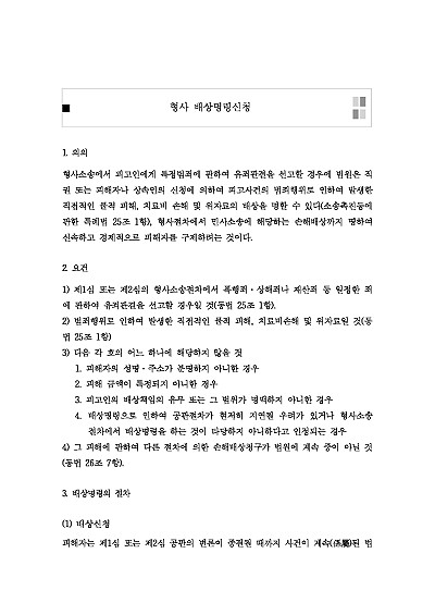 형사 배상명령신청 : 개념,요건, 절차, 효력, 관련 서식 등 요약정보 및 구매