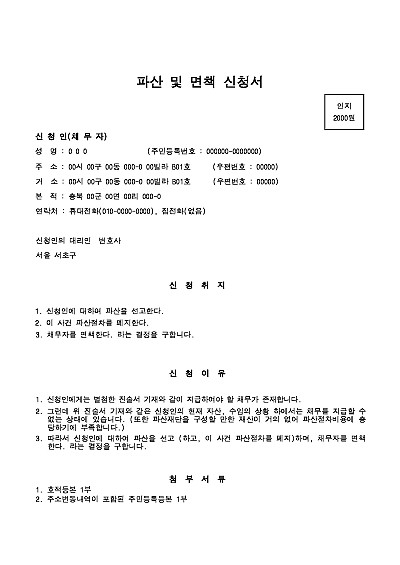 실제 법원제출 파산 및 면책신청서, 진술서, 채권자목록, 채권자주소, 재산목록, 현재의생활상황, 가계수지표 등 양식 요약정보 및 구매