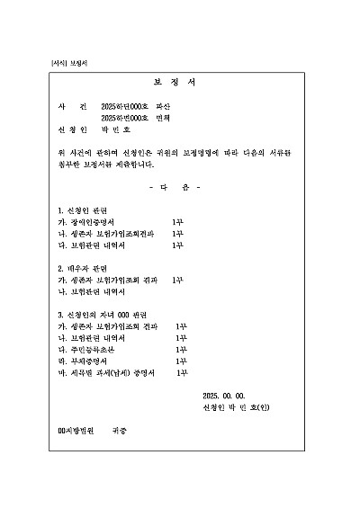 법원의 보정명령에 따른 보정서 양식 요약정보 및 구매