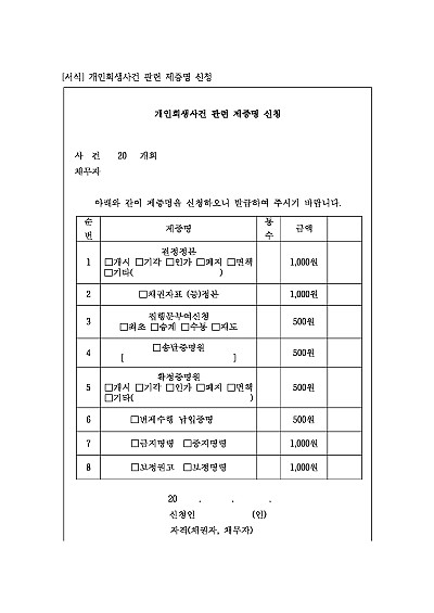 개인회생사건 관련 제증명 신청서 양식 요약정보 및 구매