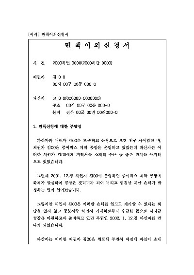 실제 법원제출 면책이의신청서 양식 요약정보 및 구매