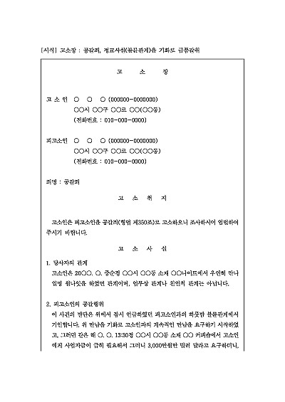 고소장 : 공갈죄, 정교사실(불륜관계)을 기화로 금품갈취 요약정보 및 구매