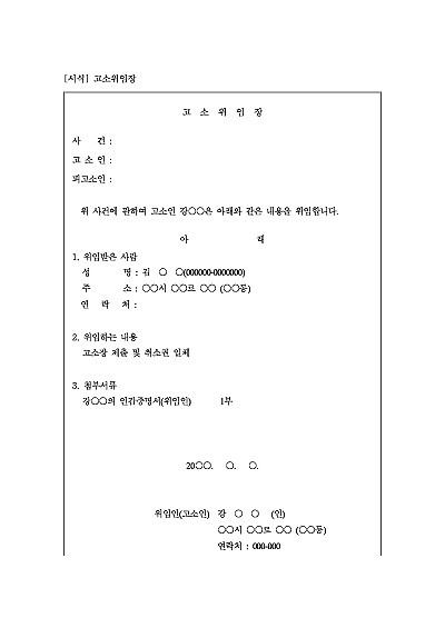 주요내용 : 자신의 형사고소 및 관련 일체의 권한을 대신 처리해달라고 위임시 사용되어지는 양식임. 단 무단전재 방지목적으로 PDF 파일로 올리니구매하신 후 혹 원본 파일이 필요하신 분들은 톡이나 문자메일전화 등을 주시면 작성방법 등에 대한 간단한 무료상담과 함께 원본 파일을 보내드리도록 하겠습니다.