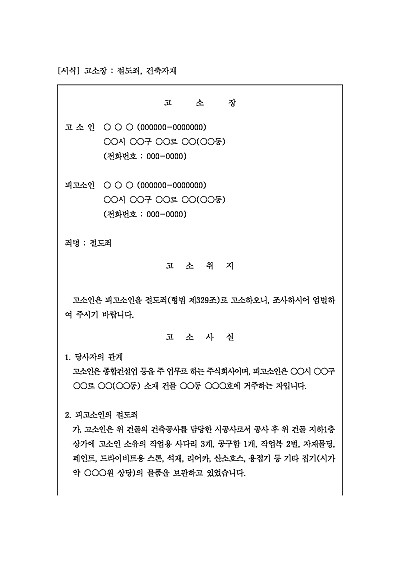 고소장 : 절도죄, 건축자재 요약정보 및 구매