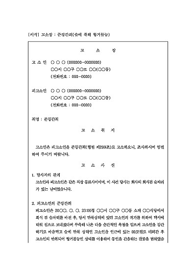 고소장 : 준강간죄(술에 취해 항거불능) 요약정보 및 구매