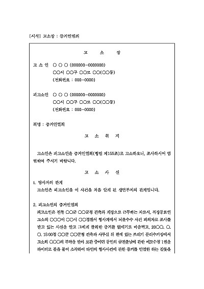 • 기타 고소장 서식