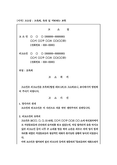 주요내용 :모욕죄의 유형은 주로언어적, 문서/온라인, 행위적으로 나눌 수 있으며, 이는 상대방의 사회적 평가를 저하시킬 만한 경멸적 표현이라는 공통점을 가짐. 단 무단전재 방지목적으로 PDF 파일로 올리니, 구매하신 후 혹 원본 파일이 필요하신 분들은 톡이나 문자, 메일, 전화 등을 주시면 작성방법 등에 대한 간단한 무료상담과 함께 원본 파일을 보내드리도록 하겠습니다.