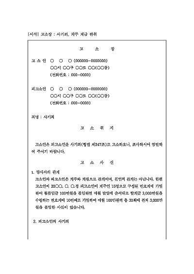 고소장 : 사기죄, 계주 계금 편취 요약정보 및 구매