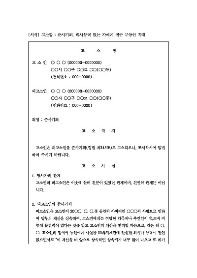 고소장 : 준사기죄, 의사능력 없는 자에게 접근 부동산 착취 요약정보 및 구매