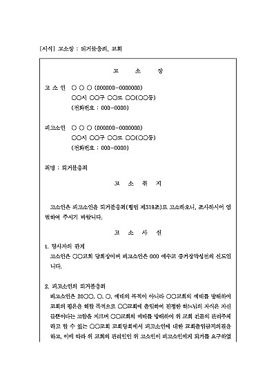 고소장 : 퇴거불응죄, 교회 요약정보 및 구매