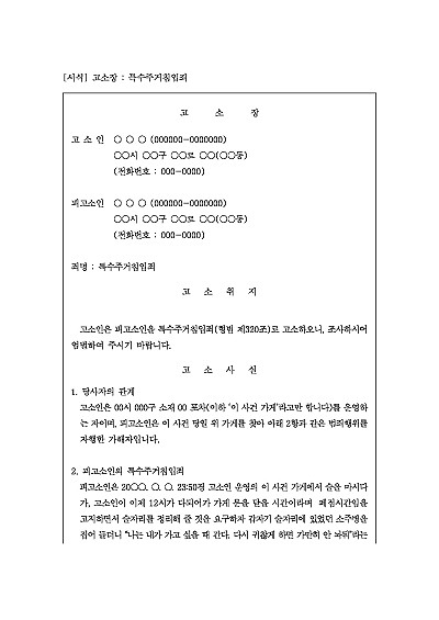 고소장 : 특수주거침입죄 요약정보 및 구매