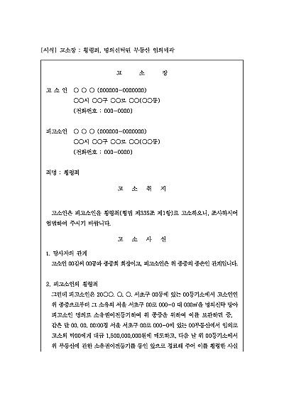 고소장 : 횡령죄, 명의신탁된 부동산 임의매각 요약정보 및 구매