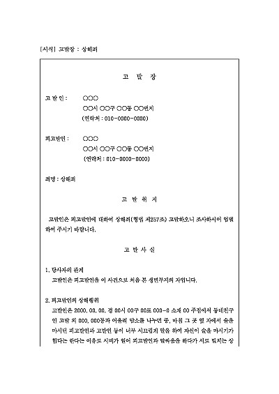 고발장 : 상해죄 요약정보 및 구매