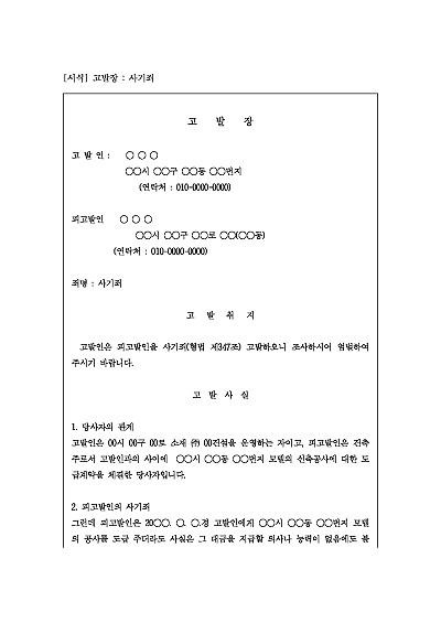 고발장 : 사기죄 요약정보 및 구매