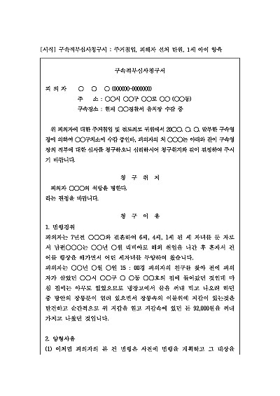 구속적부심사청구서 : 주거침입, 피해자 선처 탄원, 1세 아이 양육 요약정보 및 구매