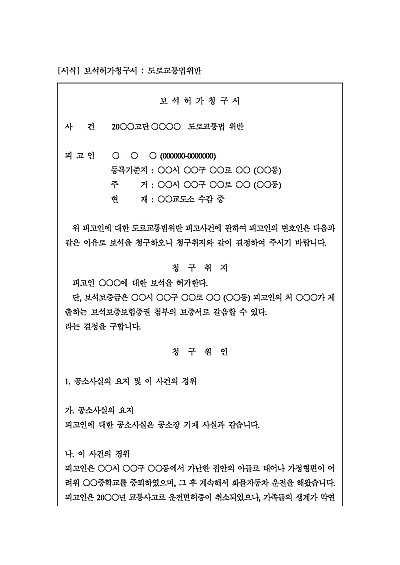 보석허가청구서 : 도로교통법위반 요약정보 및 구매