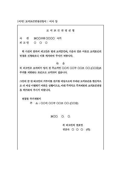 보석조건변경신청서 : 이사 등 요약정보 및 구매