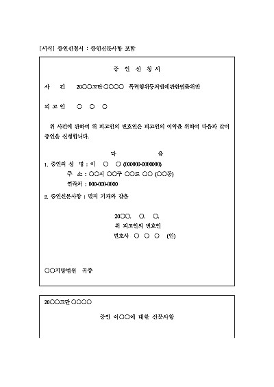 증인신청서(증인신문사항 포함) 요약정보 및 구매