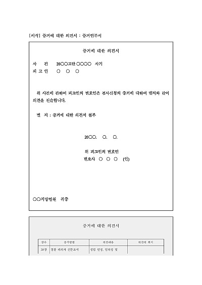 주요내용 : 피고사건에 관하여 검사가 제출한 증거에 대해 피고인이나 변호인이 각 증거에 대한 인정여부 등을 밝히기 위하여 사용되어지는 신청서 양식임. 단 무단전재 방지목적으로 PDF 파일로 올리니, 구매하신 후 혹 원본 파일이 필요하신 분들은 톡이나 문자, 메일, 전화 등을 주시면 작성방법 등에 대한 간단한 무료상담과 함께 원본 파일을 보내드리도록 하겠습니다.