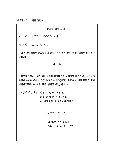 주요내용 : 피고사건에 관하여 검사가 제출한 증거에 대해 피고인이나 변호인이 각 증거에 대한 인정여부 등을 밝히기 위하여 사용되어지는 신청서 양식임. 단 무단전재 방지목적으로 PDF 파일로 올리니구매하신 후 혹 원본 파일이 필요하신 분들은 톡이나 문자메일전화 등을 주시면 작성방법 등에 대한 간단한 무료상담과 함께 원본 파일을 보내드리도록 하겠습니다.