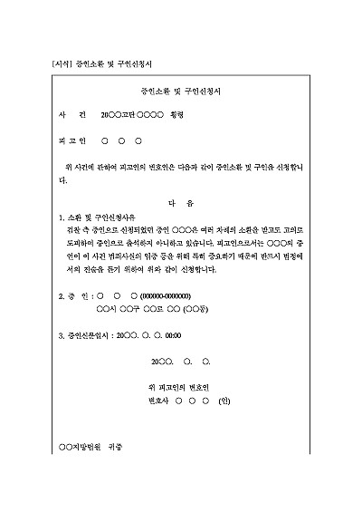 주요내용 : 피고인을 위하여 꼭 필요한 증인임에도 불구하고 정당한 사유 없이 추럭 명령을 거부하고 있을 때 법원이 강제로 촐석시킬 수 있도록 신청할 때 사용되어지는 신청서 양식임. 단 무단전재 방지목적으로 PDF 파일로 올리니, 구매하신 후 혹 원본 파일이 필요하신 분들은 톡이나 문자, 메일, 전화 등을 주시면 작성방법 등에 대한 간단한 무료상담과 함께 원본 파일을 보내드리도록 하겠습니다.