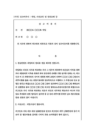 상고이유서 : 배임, 사실오인 및 법리오해 등 요약정보 및 구매