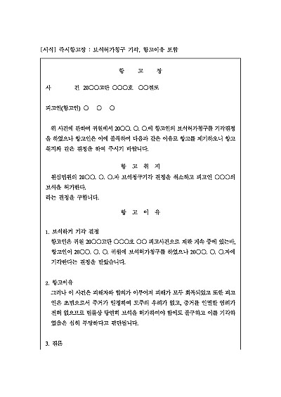 즉시항고장 : 보석허가청구 기각, 항고이유 포함 요약정보 및 구매
