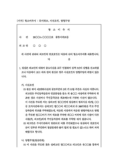 항소이유서 - 문서위조, 사실오인, 양형부당 요약정보 및 구매