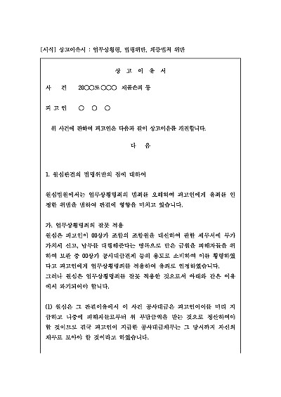 [로펌제작] 상고장 : 상고이유 포함, 재물손괴, 법령위반, 채증법칙 위반 요약정보 및 구매