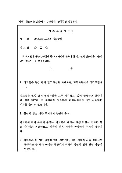 항소이유 보충서 : 강도상해, 양형부당 감경요청 요약정보 및 구매