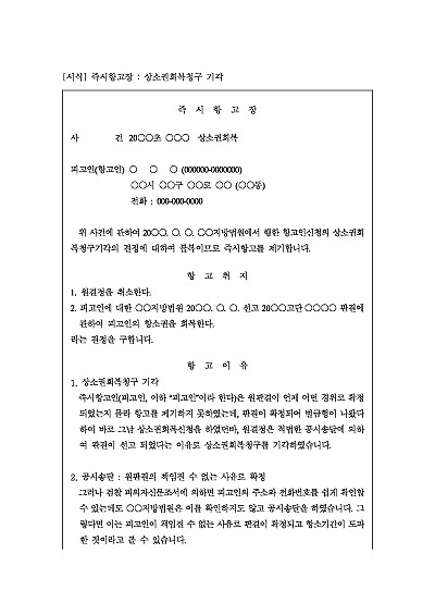 주요내용 : 법원의 결정에 불복할 때 결정의 효력정지 및 상급법원에서 다시 판단을 받기 위한 목적으로 3일 이내에 항고할 때 사용되어지는 양식임. 단 무단전재 방지목적으로 PDF 파일로 올리니, 구매하신 후 혹 원본 파일이 필요하신 분들은 톡이나 문자, 메일, 전화 등을 주시면 작성방법 등에 대한 간단한 무료상담과 함께 원본 파일을 보내드리도록 하겠습니다.