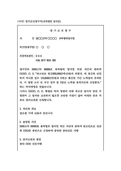 주요내용 : 증거가 사라지거나 훼손될 우려가 있을 때 법원에 미리 증거조사를 신청하여 확보하는 절차로써, 이는 특히 시간이 지나면 지워지거나 폐기될 가능성이 높은 CCTV 영상, 녹취록, 카카오톡 대화 등 정황 증거를 확보하기 위해 활용되어지는 청구서 양식임. 단 무단전재 방지목적으로 PDF 파일로 올리니, 구매하신 후 혹 원본 파일이 필요하신 분들은 톡이나 문자, 메일, 전화 등을 주시면 작성방법 등에 대한 간단한 무료상담과 함께 원본 파일을 보내드리도록 하겠습니다.