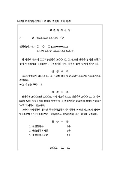 판결정정신청서 : 판결의 잘못된 표기 정정 요약정보 및 구매