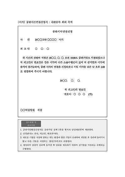 공판시간변경신청서 : 재판중복 회피 목적 요약정보 및 구매