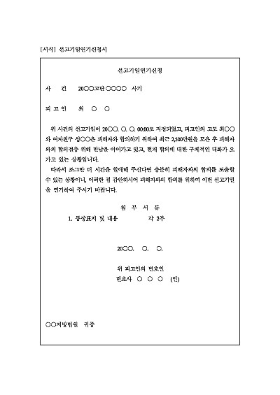 선고기일연기신청서 : 피해자와의 합의 목적 요약정보 및 구매