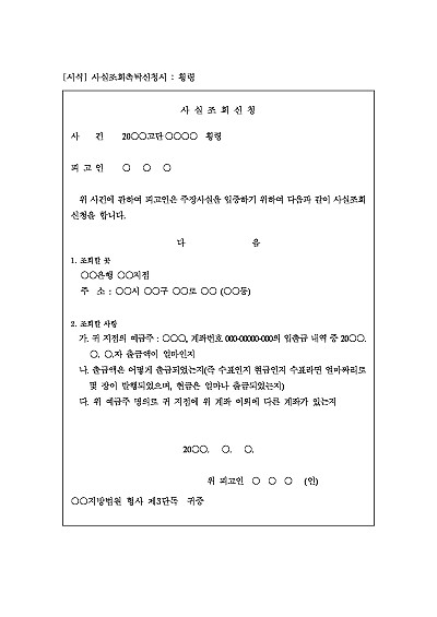 사실조회촉탁신청서 : 횡령 요약정보 및 구매