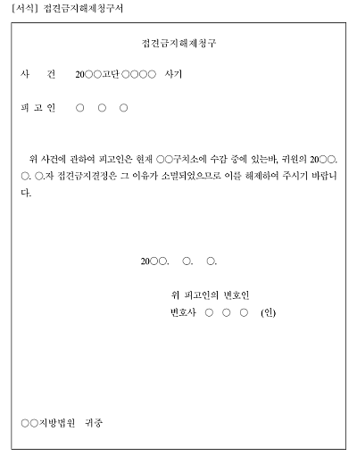 주요내용 : 변호인의 접견을 제한하는 조치를 취한 후에 그 제한 조치를 한 원인이 소멸되면 즉시 이를 해제하기 위한 목적으로 사용되어지는 신청서 양식임. 단 무단전재 방지목적으로 PDF 파일로 올리니, 구매하신 후 혹 원본 파일이 필요하신 분들은 톡이나 문자, 메일, 전화 등을 주시면 작성방법 등에 대한 간단한 무료상담과 함께 원본 파일을 보내드리도록 하겠습니다.