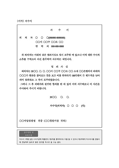 주요내용 : 법인이 자신의 범죄사실을 수사기관에 자발적으로 신고하고 조사를 받기 위한 목적으로 사용되어지는 양식임. 단 무단전재 방지목적으로 PDF 파일로 올리니구매하신 후 혹 원본 파일이 필요하신 분들은 톡이나 문자메일전화 등을 주시면 작성방법 등에 대한 간단한 무료상담과 함께 원본 파일을 보내드리도록 하겠습니다
