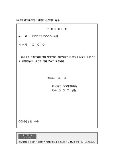 관할지정서 : 검사가 신청하는 경우 요약정보 및 구매